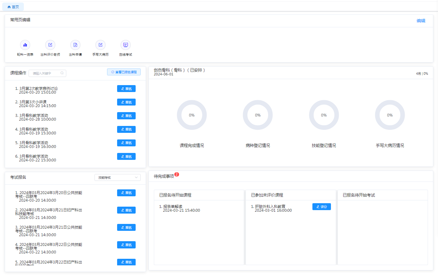 自主研發(fā)了由住院醫(yī)師規(guī)培系統(tǒng)、規(guī)范化培訓考核題庫、以及臨床技能培訓三個大模塊組成的住院醫(yī)師規(guī)范化管理系統(tǒng),在系統(tǒng)標準配置的框架下,能夠針對不同醫(yī)院的個性化需求進行細化調(diào)整和功能拓展